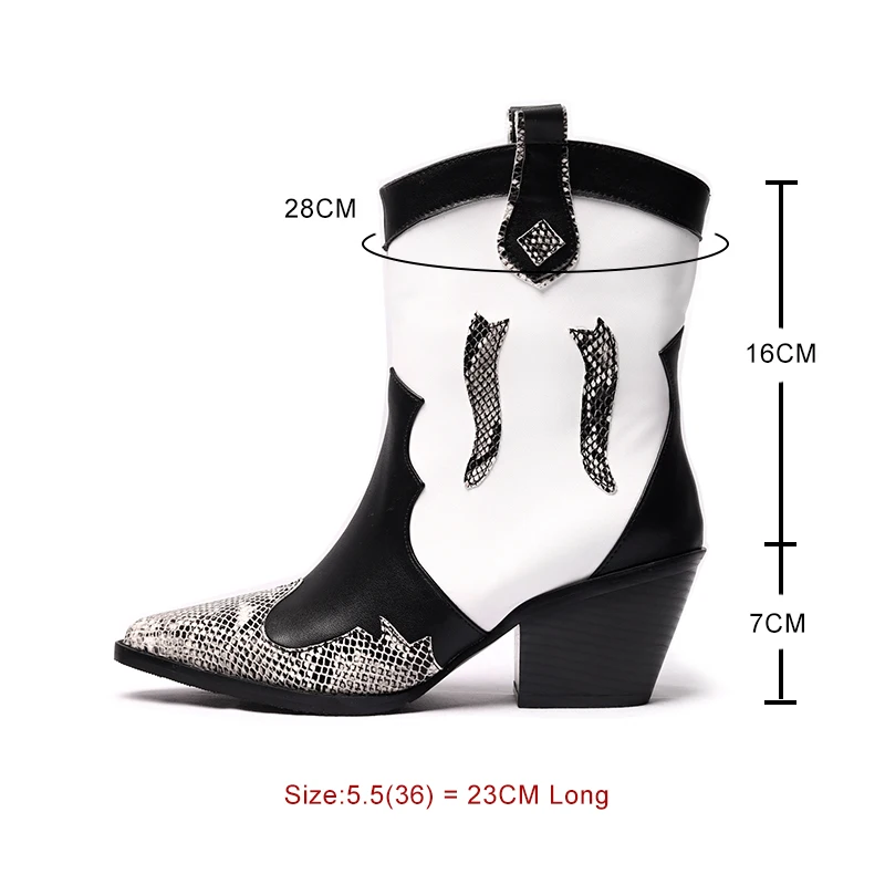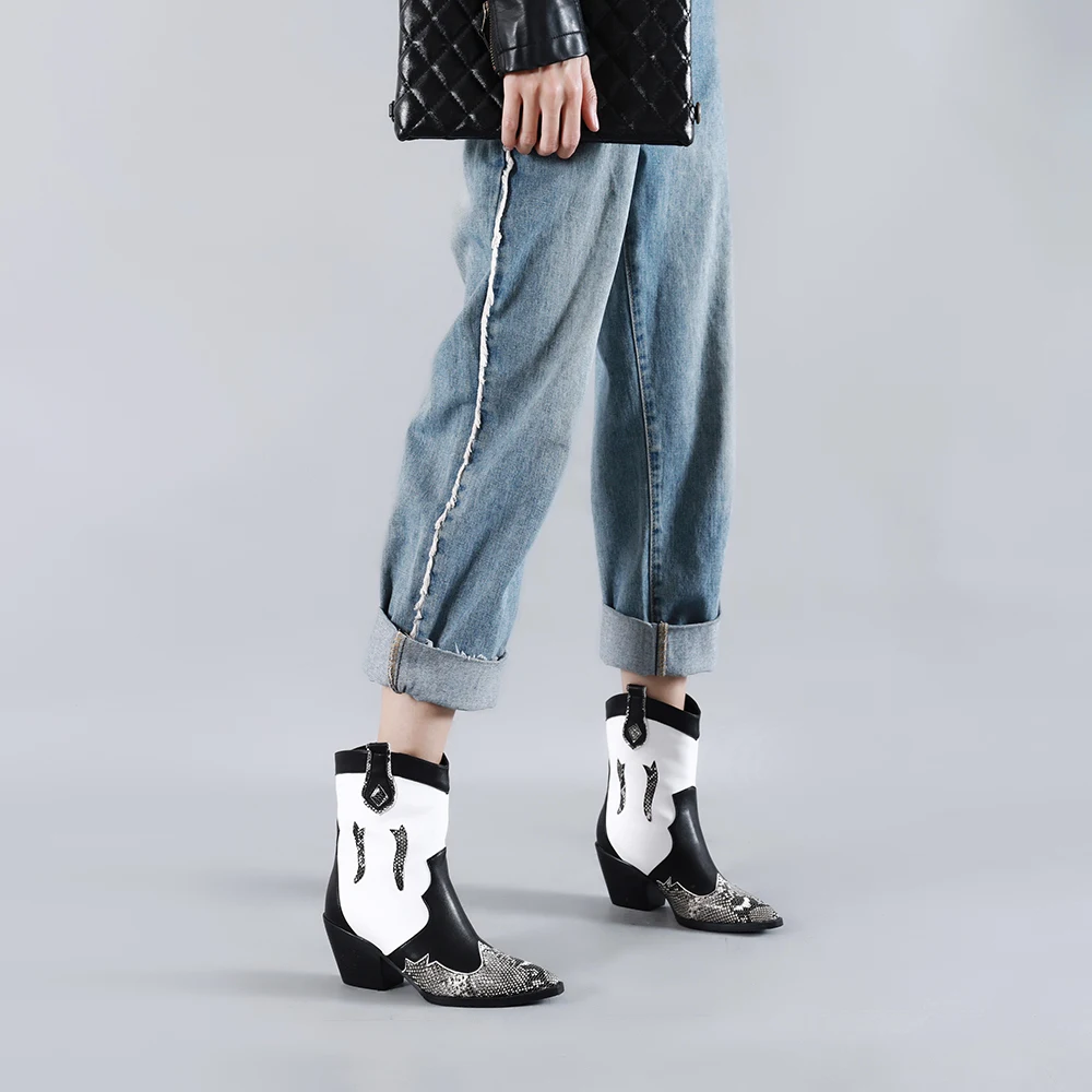 Best Cossacks Mixed Colors PU Leather Cowboy Ankle Boots Women Wedge High Heel Booties Snake Print Weste