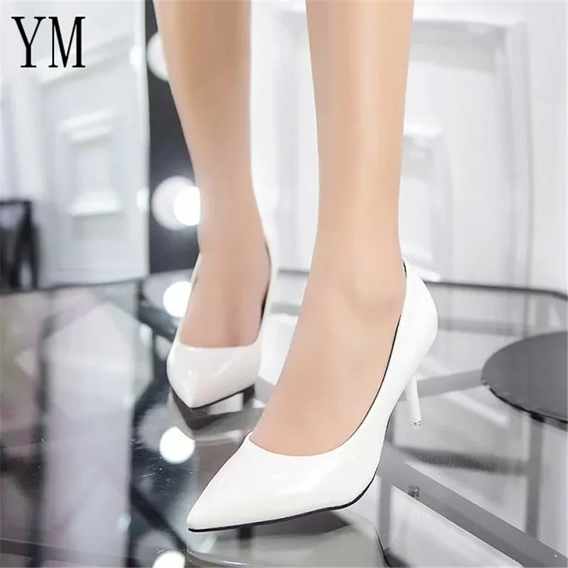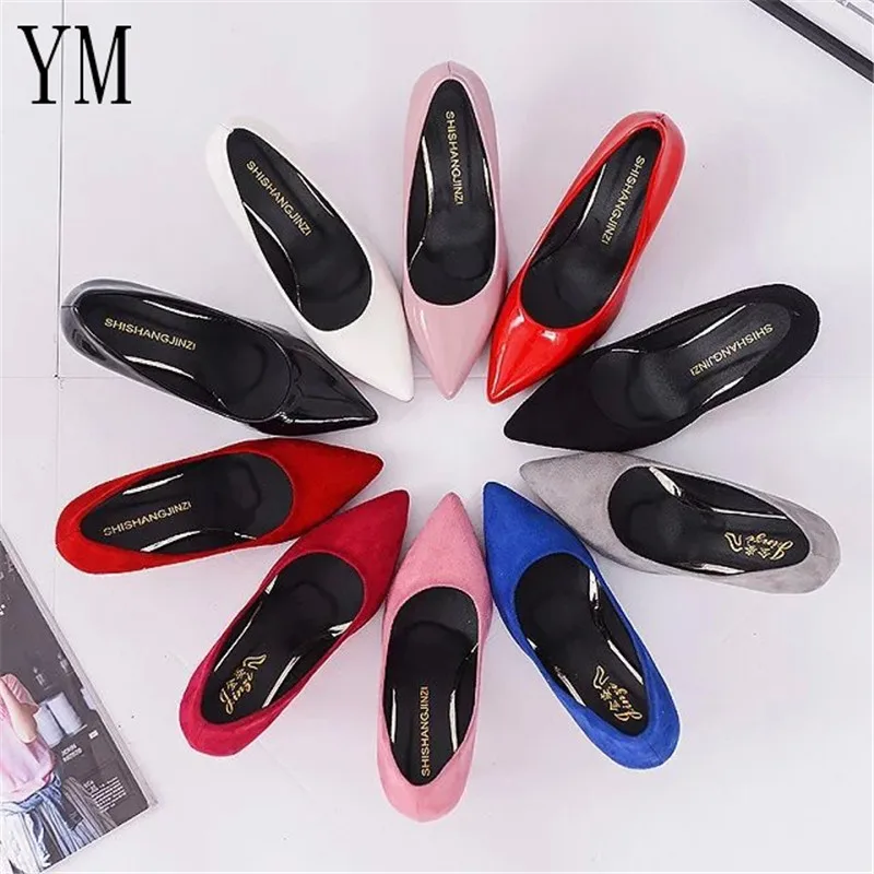 New Hot Selling Women Shoes Pointed Toe Pumps Patent Leather Dress Red 8CM High Heels Boat Shoes Shadow