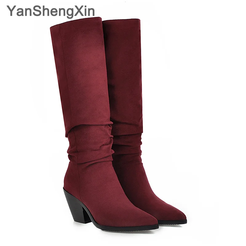 New YANSHENGXIN Shoes Woman Boots Wrinkle Soft Genuine Fur High Heel Women Boots Autumn Winter Pointed