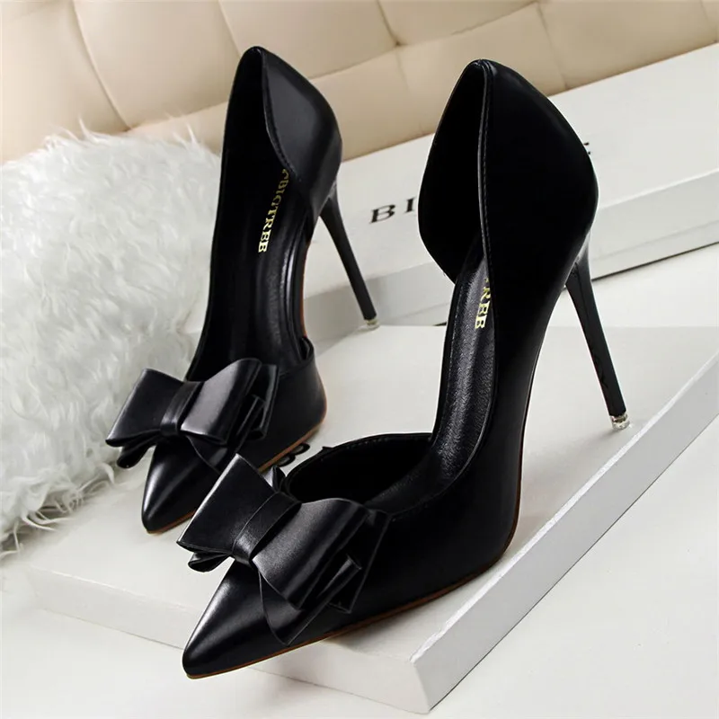 New 2019 Fashion Delicate Sweet Bowknot High Heel Shoes Side Hollow Pointed Women Pumps Pointed Toe 10.