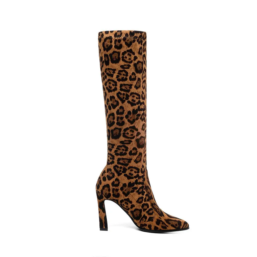 Best QUTAA 2020 High Heels Women Boots Mid Calf Shoes Sexy Pointed Toe Winter Autumn Stretch Suede Slip