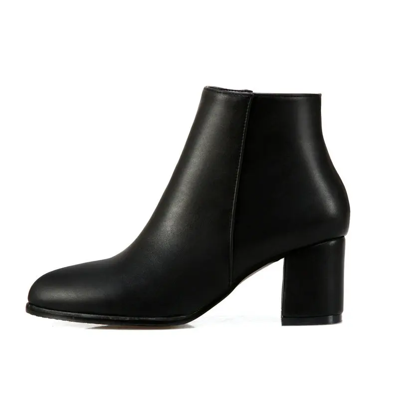 Best White Black Women Boots Comfy Square High Heel Ankle Boots Fashion Pointed Toe Zipper Boots Autumn