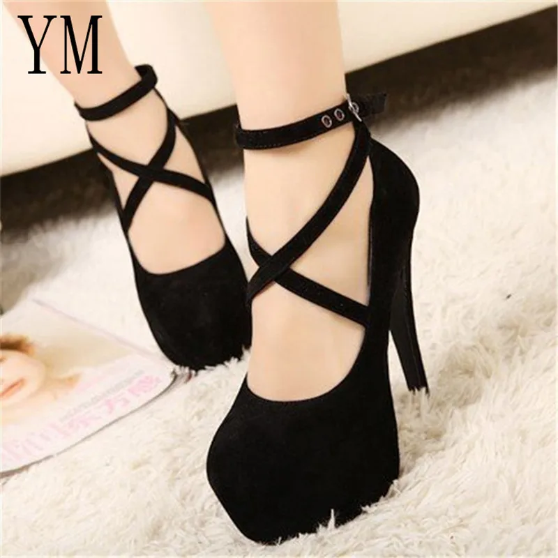 Promo Shoes Woman Pumps Cross-tied Ankle Strap Wedding Party Shoes Platform dress Women Shoes High Heels